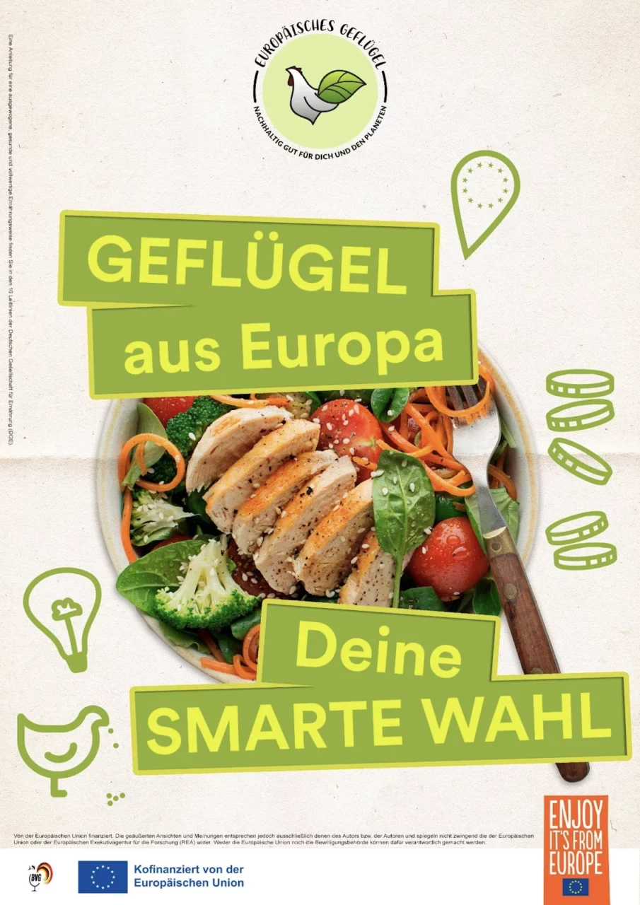 Das Programm Nachhaltiges Geflügel (SUST EU Poultry) zielt darauf ab, europäisches Geflügelfleisch und europäische Produktionsmethoden zu fördern, und unterstreicht damit sein Engagement, zu einer möglichst nachhaltigen und umweltfreundlichen Agrar- und Ernährungsindustrie in Europa beizutragen.